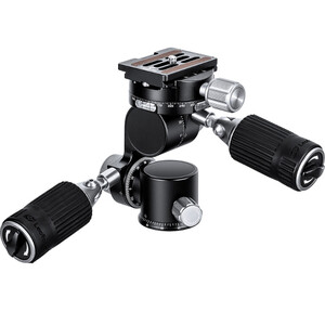 The two handles are made of stainless steel and rubberised for a comfortable and secure grip. Each handle can be used to release one axis. The friction in the axes can be individually adjusted to ensure smooth movement. This is done using large 36 mm diameter knobs for each axis.